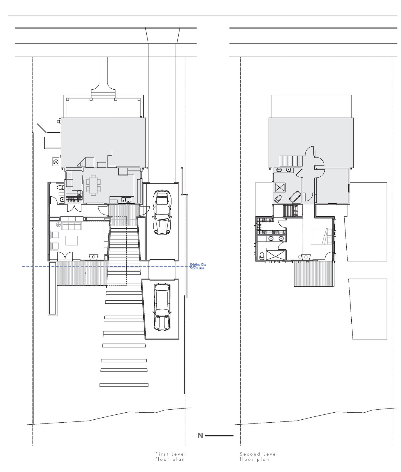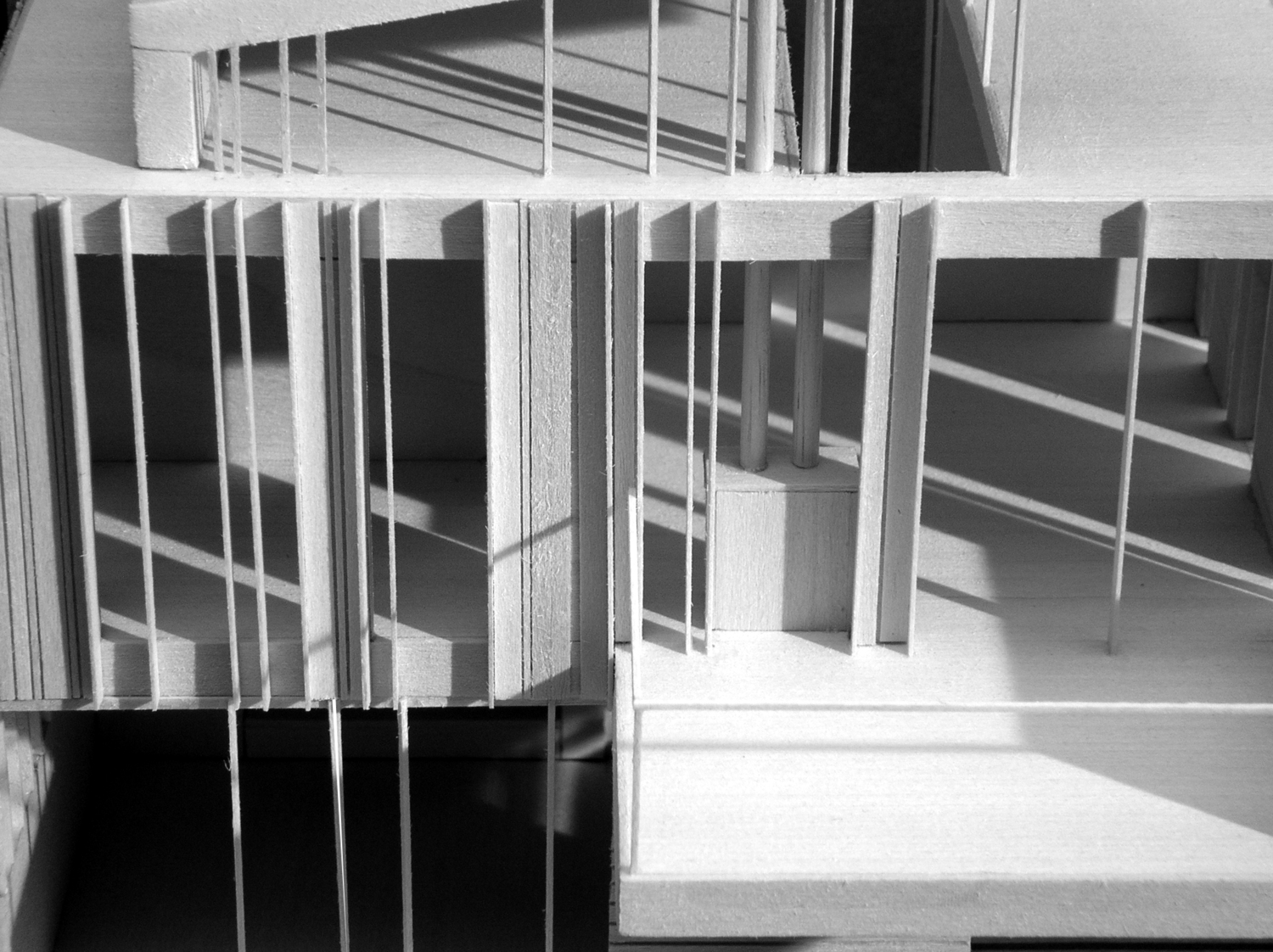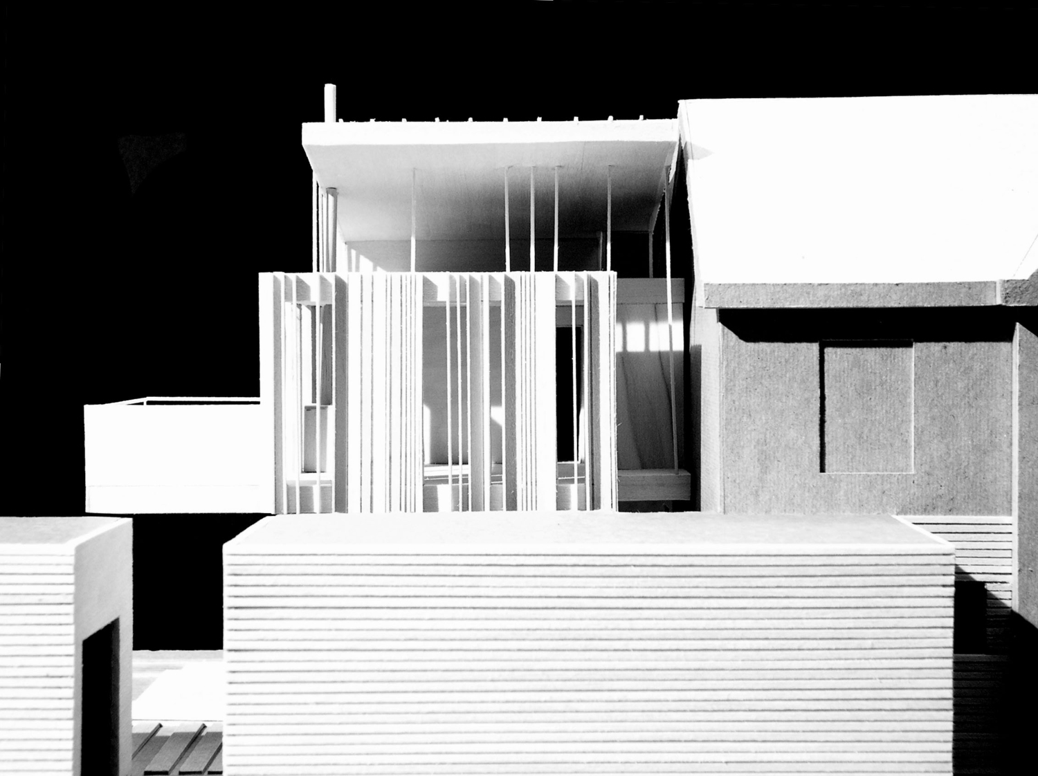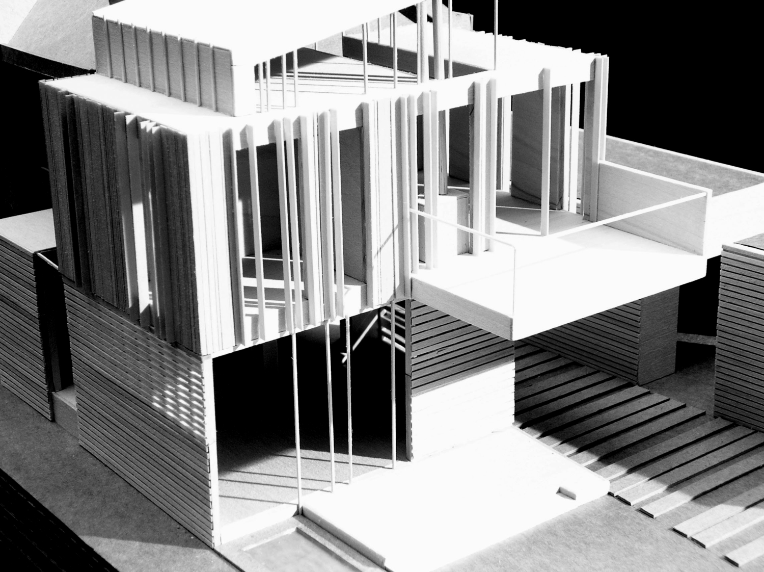 This addition consists of a new 2-car garage, family room, bathroom, and master bedroom suite. Striking views of the Little Miami River Valley conflict with the western solar orientation of this suburban Cincinnati site. We proposed vertical cedar fins to negotiate the view and the sun. These fins were absorbed from their role in solar performance into the structural plane of the faced. An intentionally ambiguous system: sometimes a fin is structural, sometimes for shading, sometimes a rain-screen, sometimes all or neither. Altogether the wood fins are subsumed into a rhythmic cladding which seeks to agitate perceptions of function and decoration.
